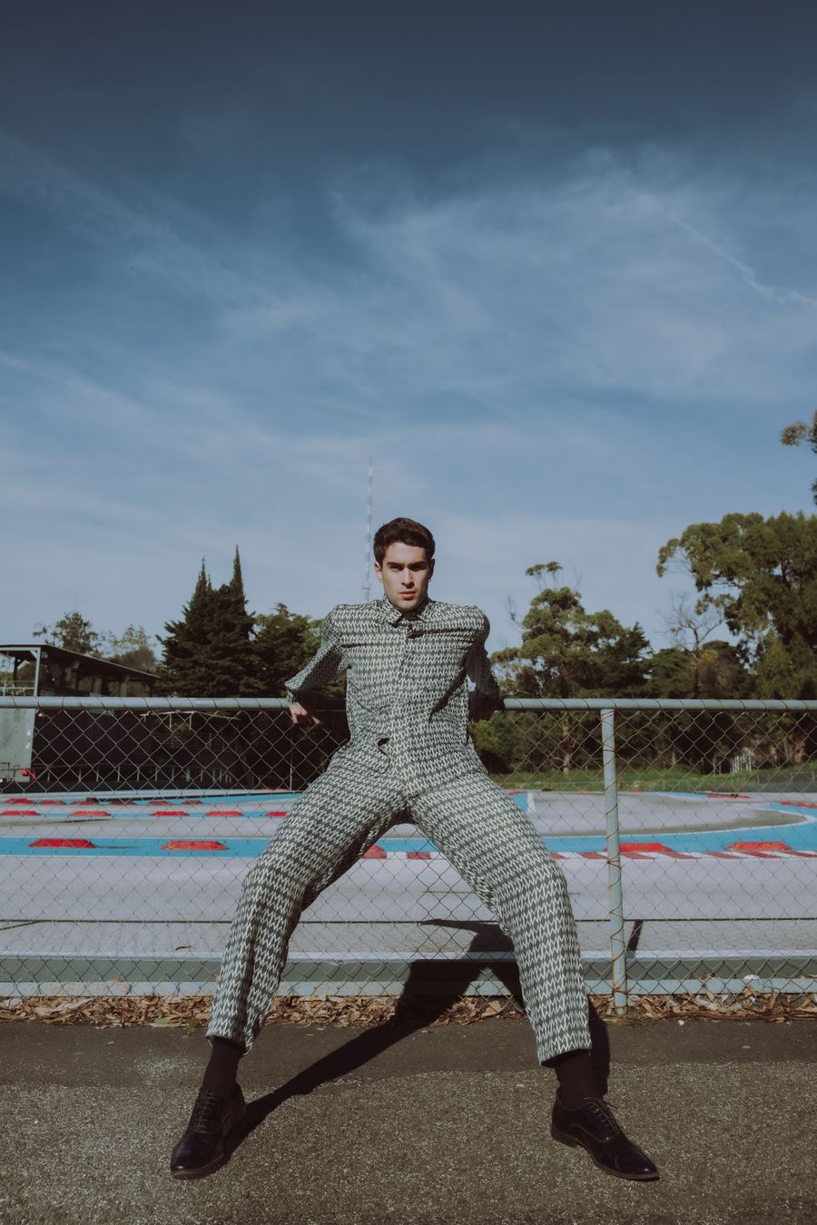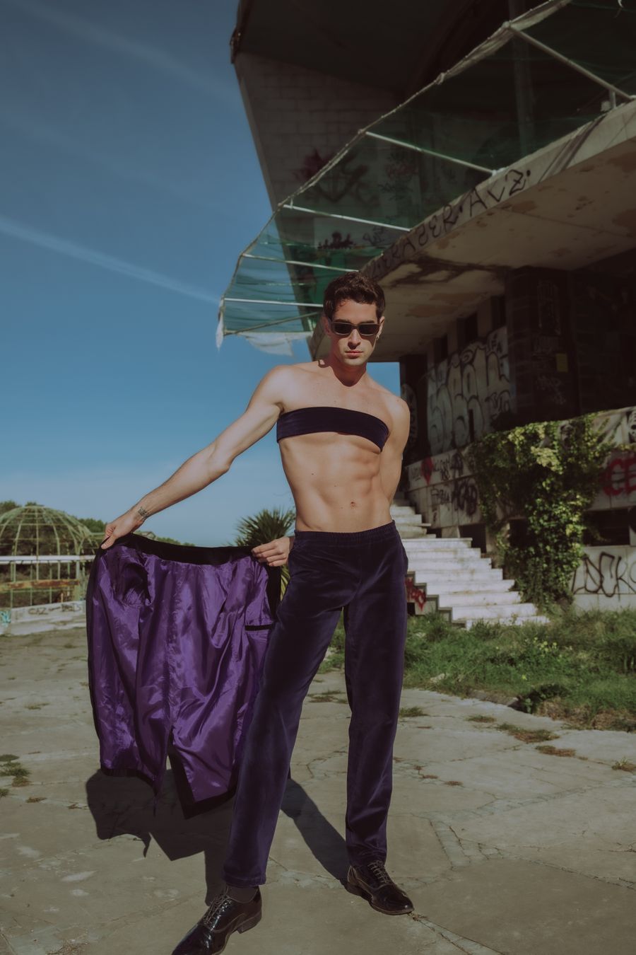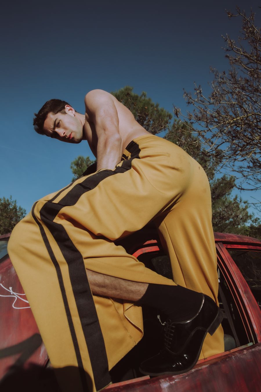 The morning of the shoot was quite cold in Lisbon. We were going green urban so Monsanto, the biggest green area of Lisbon, opened wide its arms for our creative journey. Numbing from getting changed outdoors early in the morning, Breno was doing his best to stay hardcore soft and chic simultaneously.”