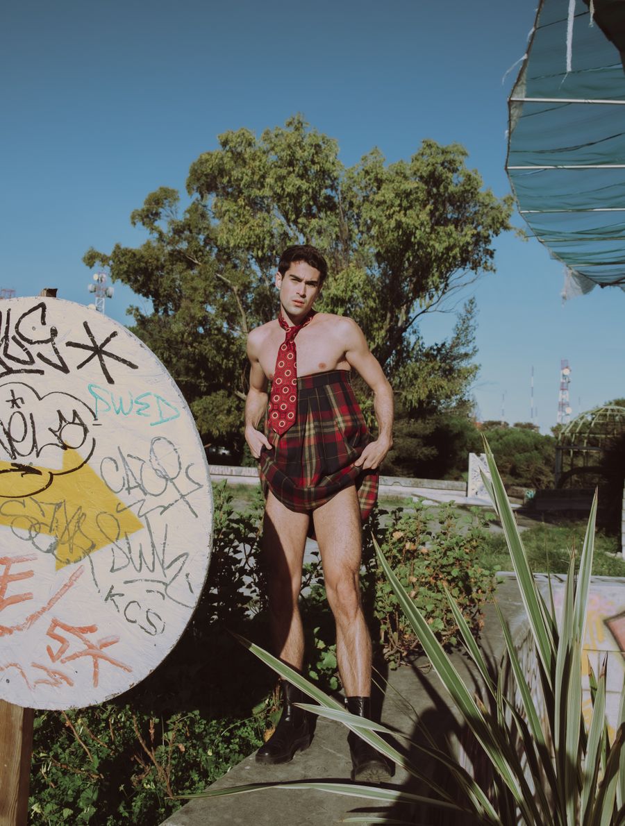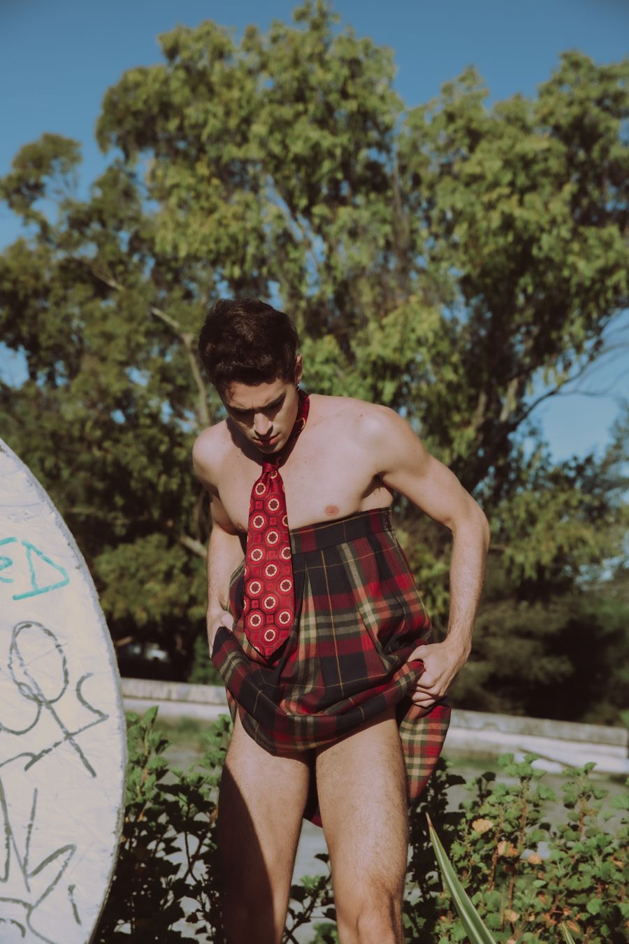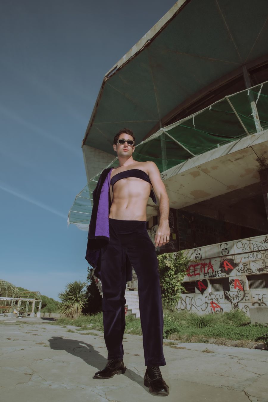 The morning of the shoot was quite cold in Lisbon. We were going green urban so Monsanto, the biggest green area of Lisbon, opened wide its arms for our creative journey. Numbing from getting changed outdoors early in the morning, Breno was doing his best to stay hardcore soft and chic simultaneously.”