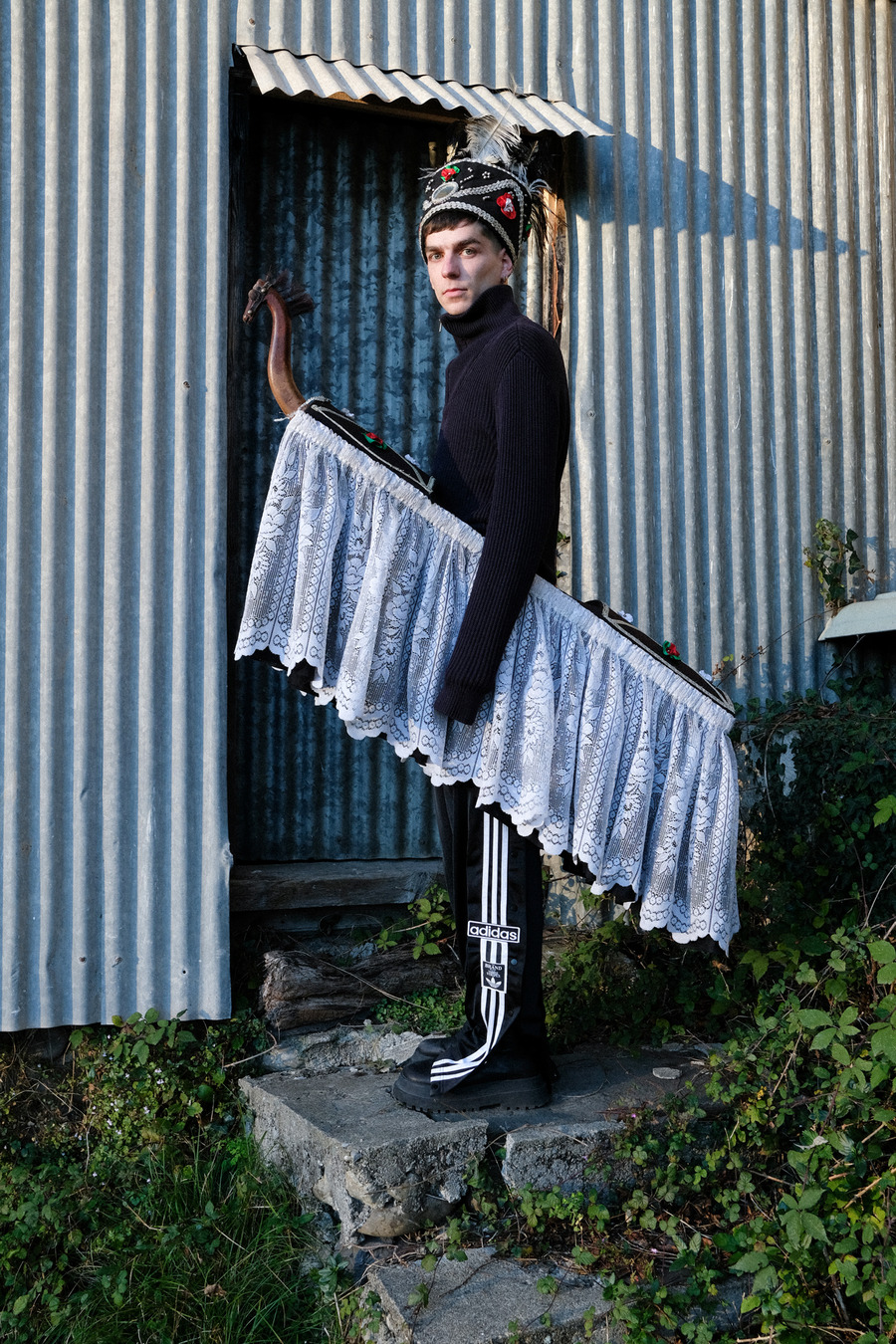 A KALTBLUT exclusive by Fanny Maillard is a self-taught and multifaceted creative entrepreneur from France. The model is Ibai Capot Thornary. The brands used are Aigle, Adidas, Doc Martens, and traditional costumes from the Basque association « Etxahun elkartea ». Assistant Photographer is Alan Billi.