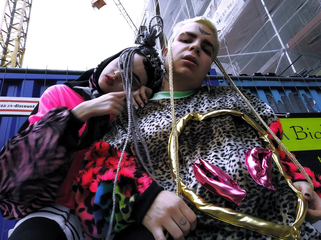 A KALTBLUT exclusive fashion story using LU LA LOOP´s Wild, Trashy, Animal, Alien sweaters! Styling and photography by Lu La Loop. Models are Kat + Justin – in the streets of Berlin.