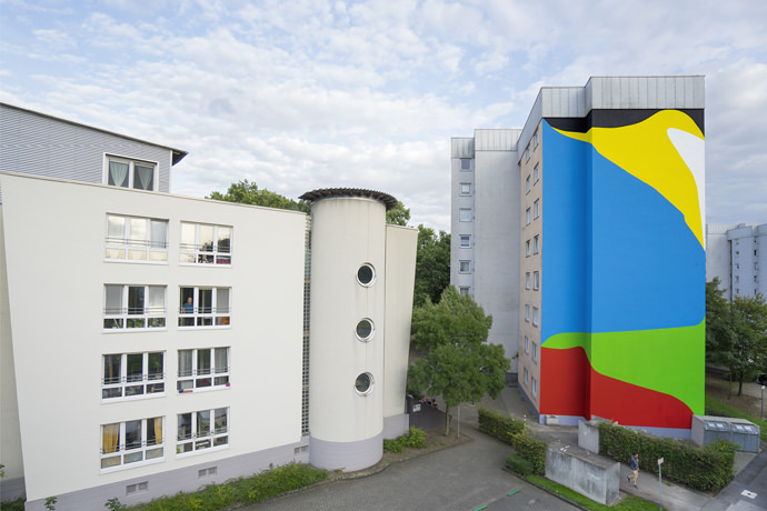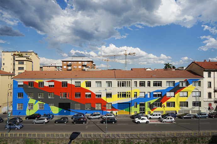 Traveling around the world, he leaves the mark of his multicolored geometric figures on the walls. Sometimes he paints large areas of color as if to awaken every inhabitant of the city. For Elian Chali, each project is intriguing because the defects of the wall disappear with a simple gesture to reveal the architecture of the buildings. As an offering to the public space, Elian dialogues with each new area that appropriates and celebrates diversity. He is a militant artist of urban art. Through his compositions with colors and shapes, the city becomes the stage for a contemporary show. Elian merges the public space with the democratic modus operandi of an international artistic revolution.