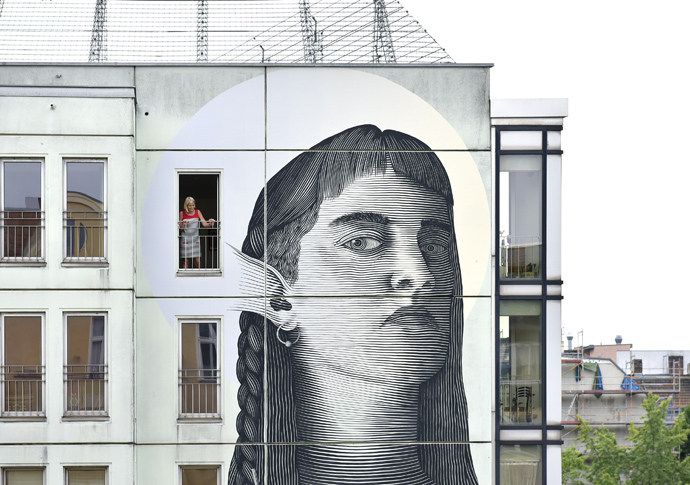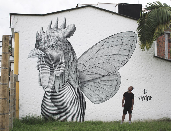 These great mythological figures, sometimes dramatic, favor an exchange in the city. Alfalfa renews the sensitive in the contemporary urban landscape. His works create sensitive effects as a supernatural power. The walls of the city become the theater of a world in which the brushes of the young urban artist Alfalfa are the instruments of an exceptional anthropomorphism. The gallery of Nicolás Alfalfa is composed of “normal” beings, the spectator and “strangers” who live together and understand each other. These metaphorical creatures from another world and from another time are a reflection of man. This magical, invisible and mysterious world carries within it the image of human nature. Rethinking the place of myths in society also means taking a distance from what it does to man.