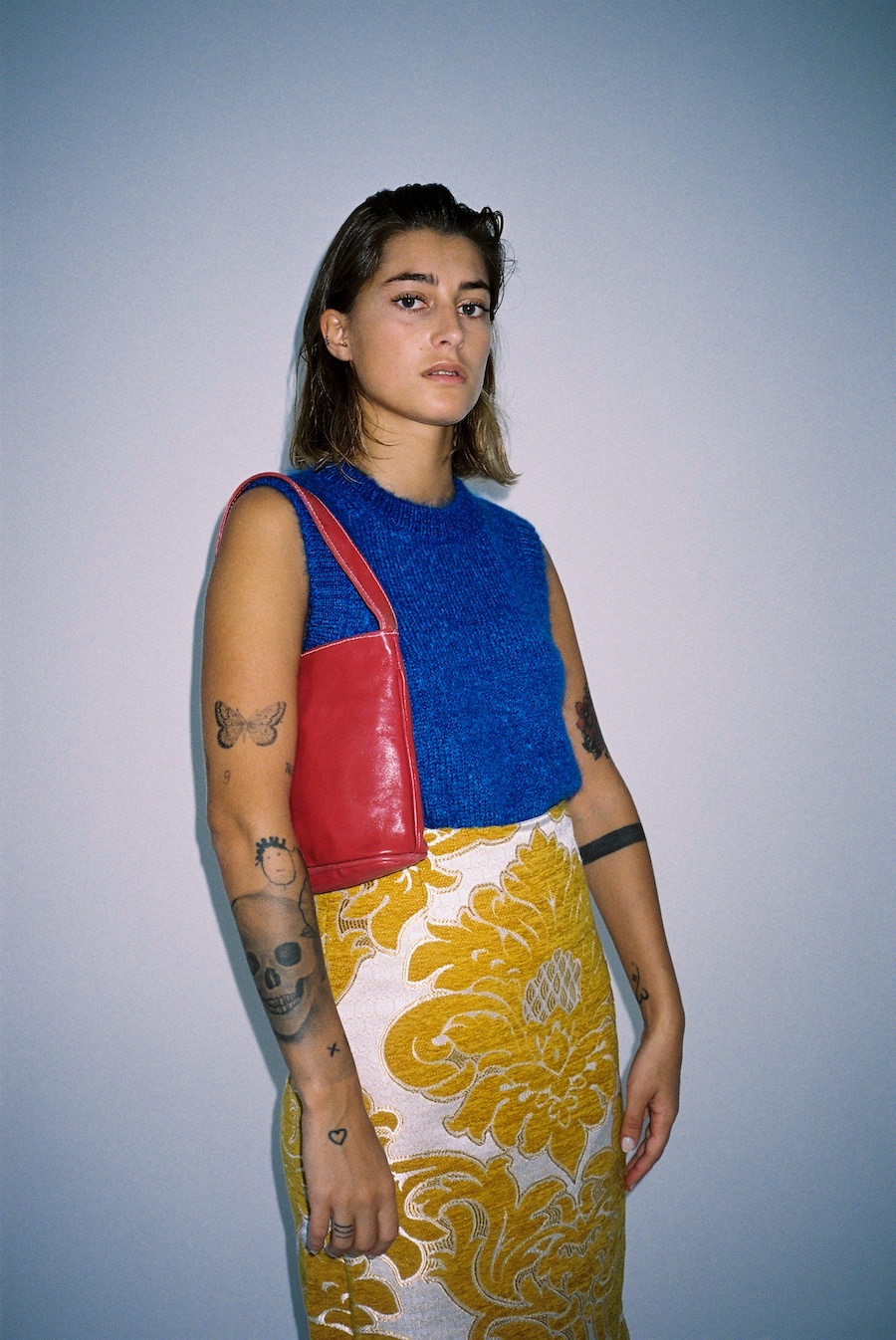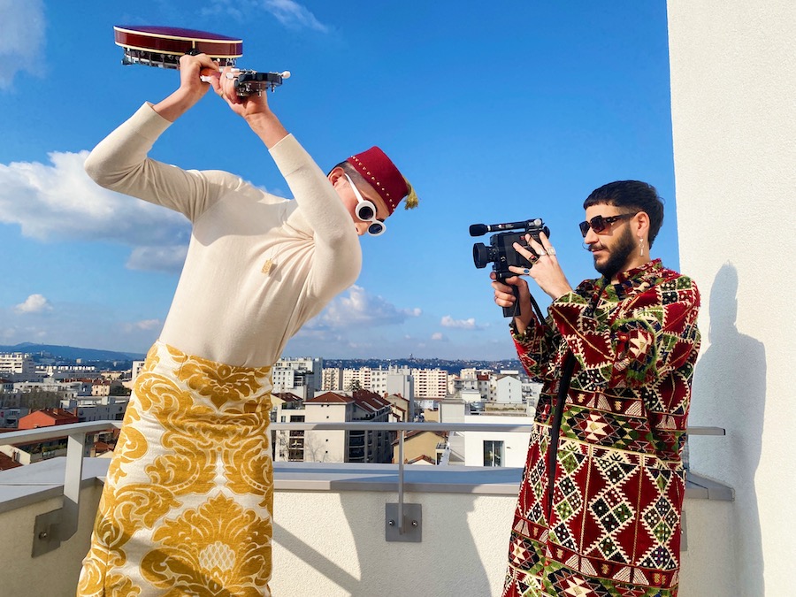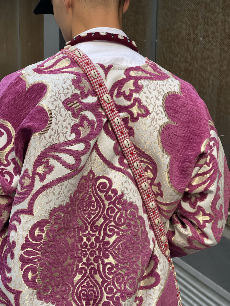 Kacimi’s sustainable designs with contemporary shapes focus on colour and quality and are inspired by Morocco’s inexhaustible joie de vivre and visual heritage. Every piece tells its own story, blending together Kacimi’s Moroccan identity with a contemporary twist, combining culture and her eccentric style. Named after her grandmother, the oversized Kenza jacket is Kacimi’s first creation for the brand. Available in limited editions of 2 or 3 pieces, in various sizes and colours, each jacket is handsewn by artisans in Rabat with Brocard upholstery fabrics, a compact textile composed of cotton and chenille blend. Other statement pieces include the Chiki skirt and the Jamâal top with androgynous and boldly sculptural forms. The Gnawa bags are hand-embroidered with quirky beads and shells by Gnawa musician Mâalem Ahmed Dkaki in Fez.